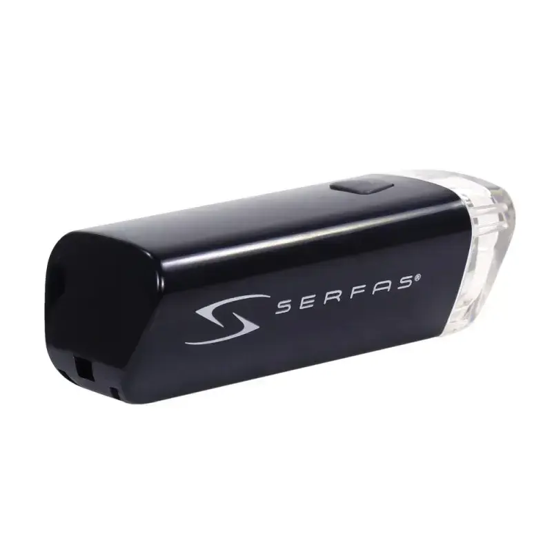 - פנס עם תפס קדמי סטנדרטי של SERFAS. נצנץ עם 2 חיבורים - לשילדה או מוט אוכף