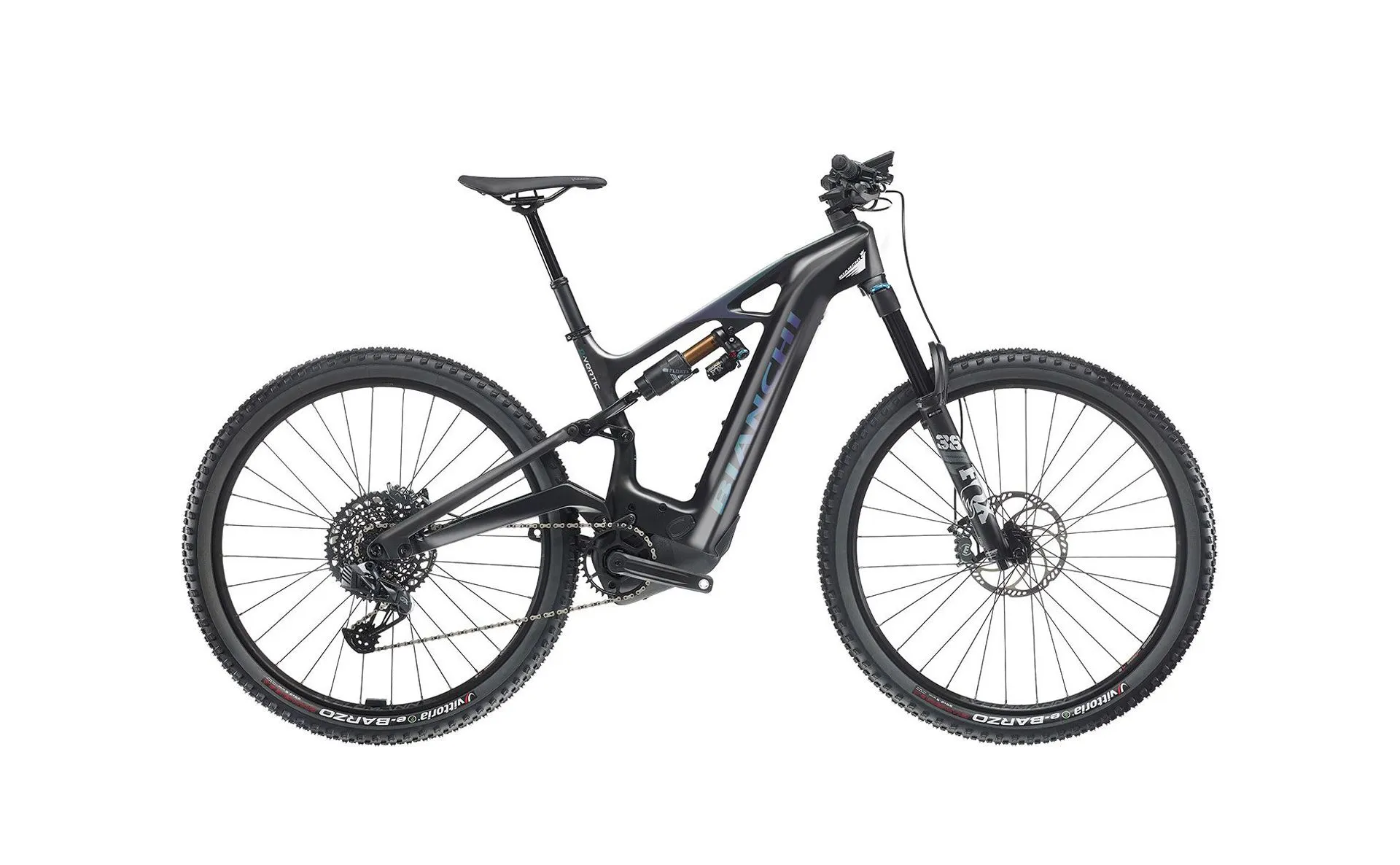 e-VERTIC FX-Type Pro - full carbon, 12x148 mm thru axle dropouts - Post mount 180 disc brake type - 160mm travel front & rear - Internal cable routing
