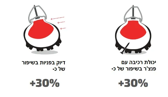 - מאפשר רכיבה עם לחץ נמוך ללא חשש לחישוקים גם בחישוקים רכים עם צמיגים עד רוחב 2.6