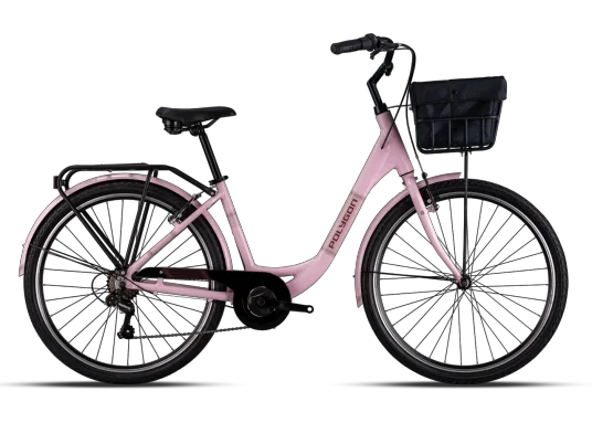 אופני עיר נוחים וידידותיים של POLYGON עם שלדת AL6 במבנה מעבר נמוך, תנוחת רכיבה זקופה ועיצוב נקי שמתאים לשימוש יומיומי בעיר